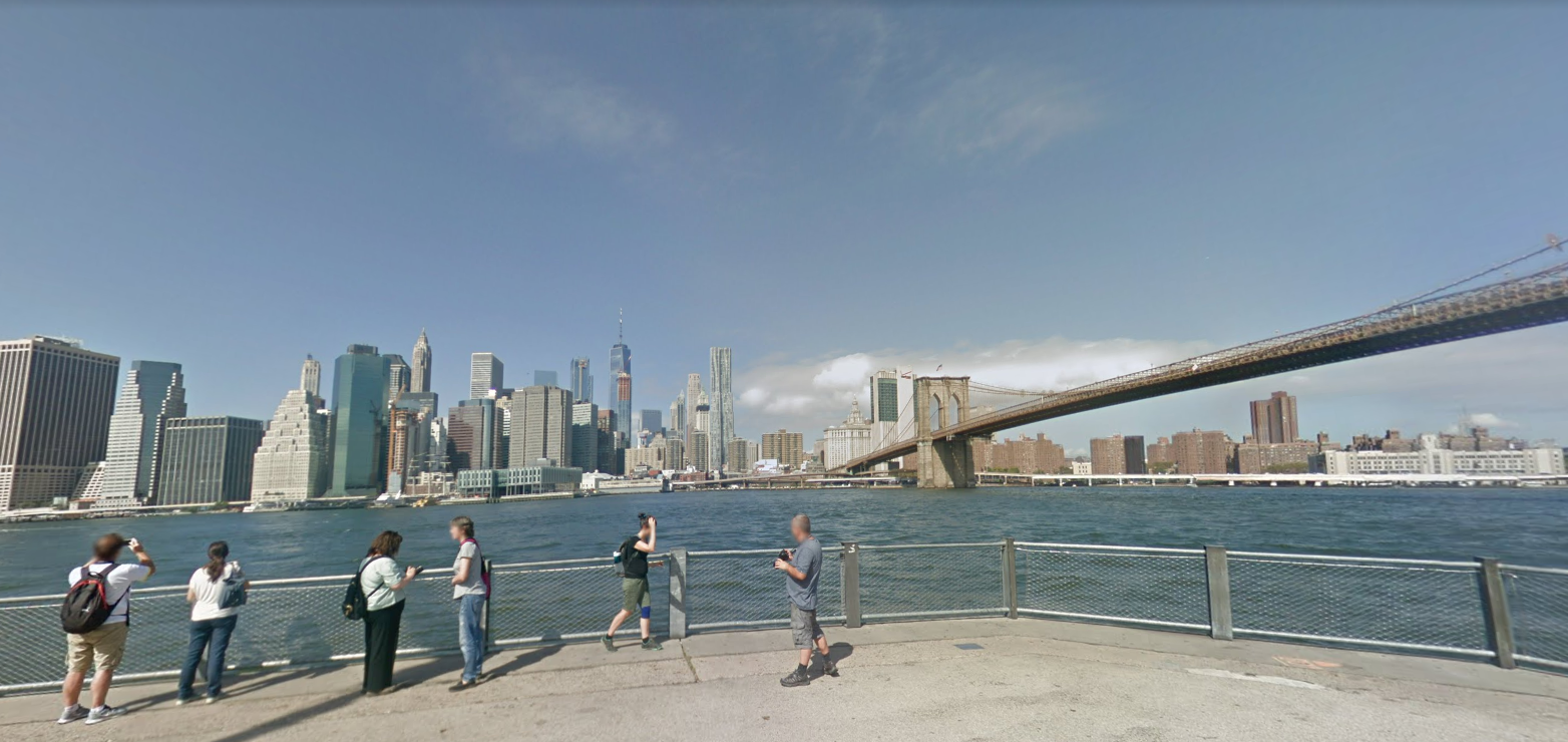 영화배경으로 많은 사람들이 좋아하는 아래사진의 배경의 지도상 위치는 사진을 클릭해보시면 구글지도로 표시해 두었습니다. Dumbo의 Washington St 와 Water St이 만나는 곳입니다.