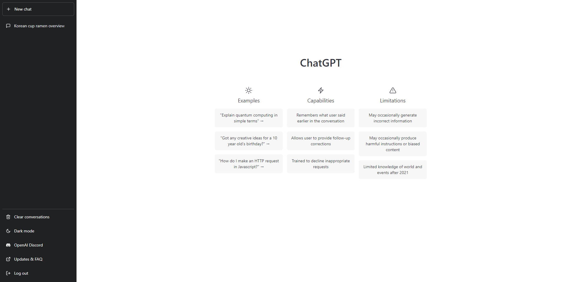 고등학교들 다니는 아이가 영작 숙제를 5분만에 끝냈다며 자랑을 합니다. 정확히는 ChatAI로 영작 숙제를 대신 했다는 거죠..쩝~~ https://chat.openai.com/chat