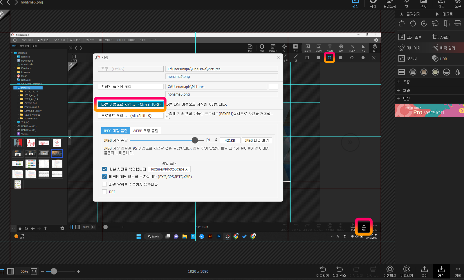 5. 작업을 마친 후 "저장" > "다른이름으로 저장"을 선택하여 이미지를 저장한 후 필요한 곳에 사용하고 있습니다.