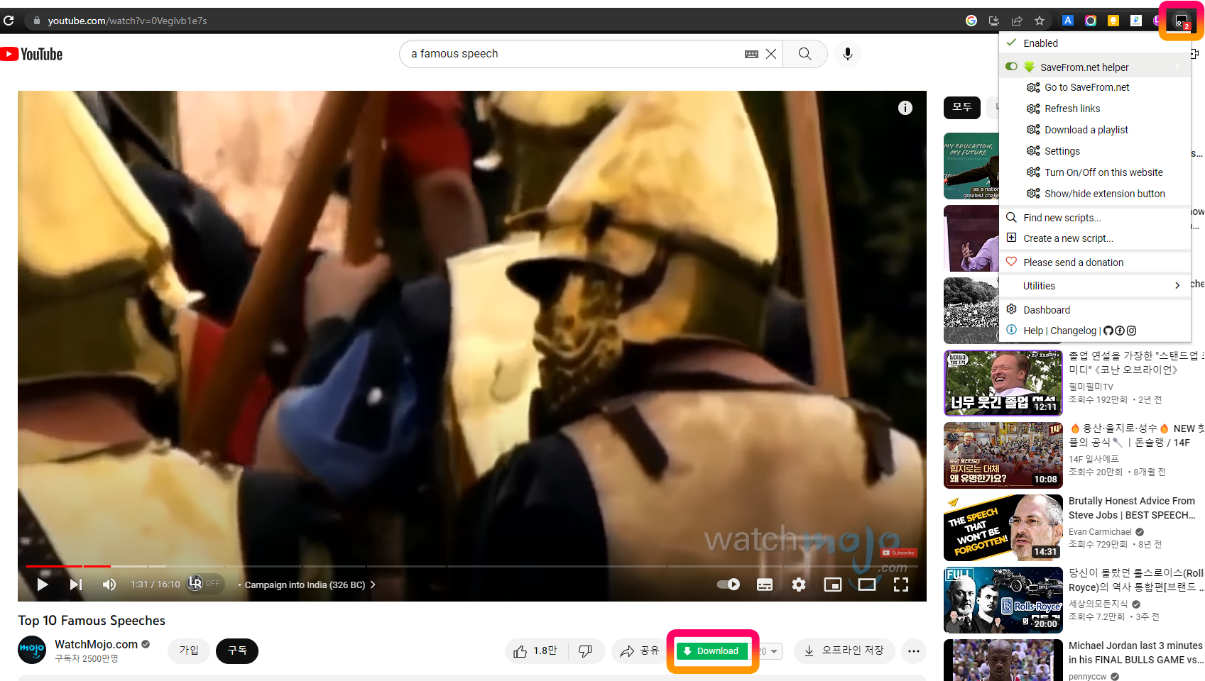 Tampermonkey로 원하는 유튜브동영상 바로바로 다운로드 하세요. 이글을 적으면 다운로드 확인해 보니 아주 잘됩니다.