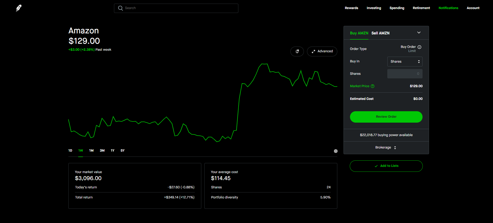 하락시 조금씩 추가 매수 중인데 현재 수익률은 +$349.14 (+12.71%) 입니다.