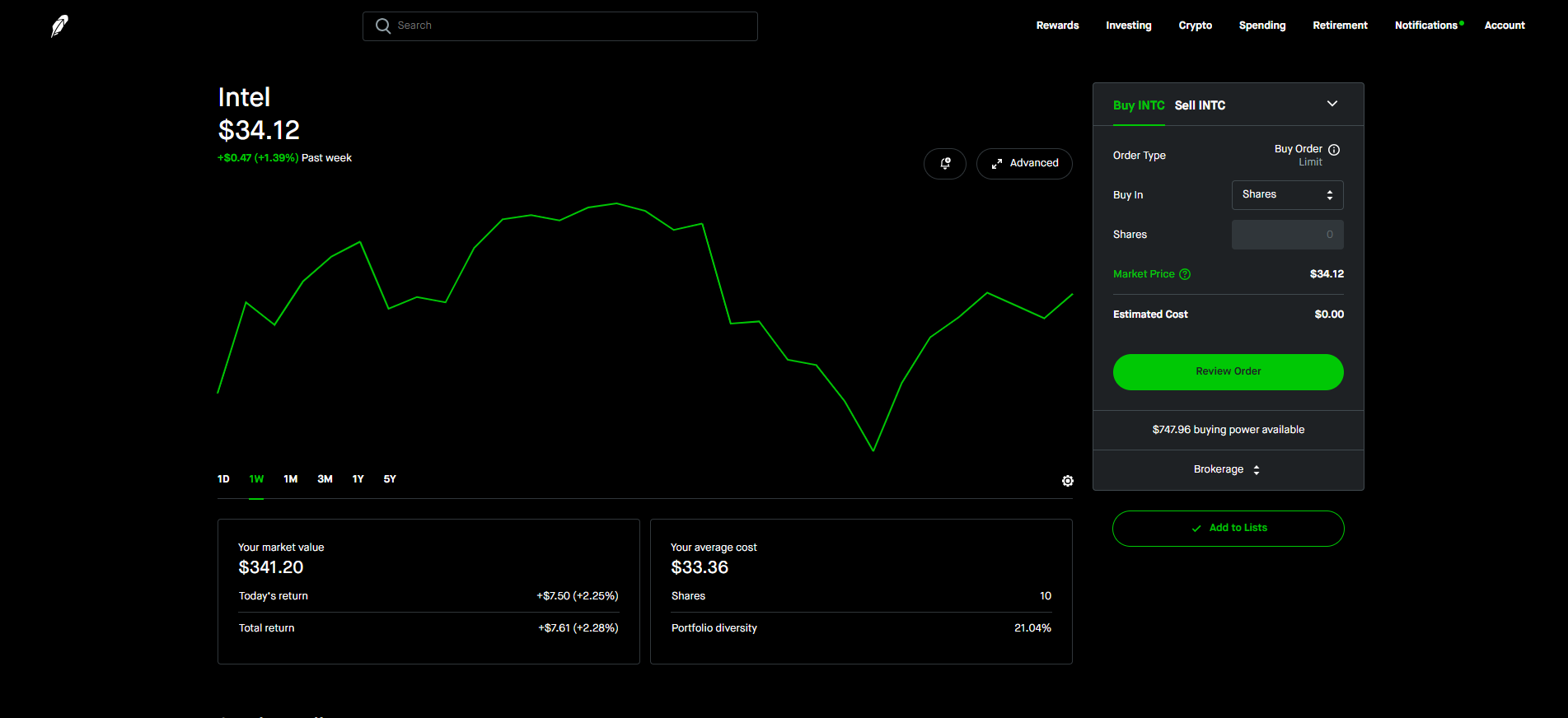 지난주 $75,8813.49 중 INTC와 GOEV를 제외하곤 모두 매도하였습니다. INTC의 경우 이제 막 정찰병을 보내놓은 주식이고 GOEV의 경우 제 애정의 종목인데 현재 보시는 봐와 같이 -60%입니다.