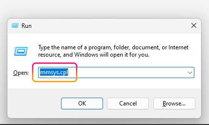 어떤 분들은 Stereo Mix를 활성화할 수 없는 분들도 계실 겁니다. 그럴 땐 "Window Key + R"을 누런 후 입력창에 "mmsys.cpl"라고 입력 후 "OK"