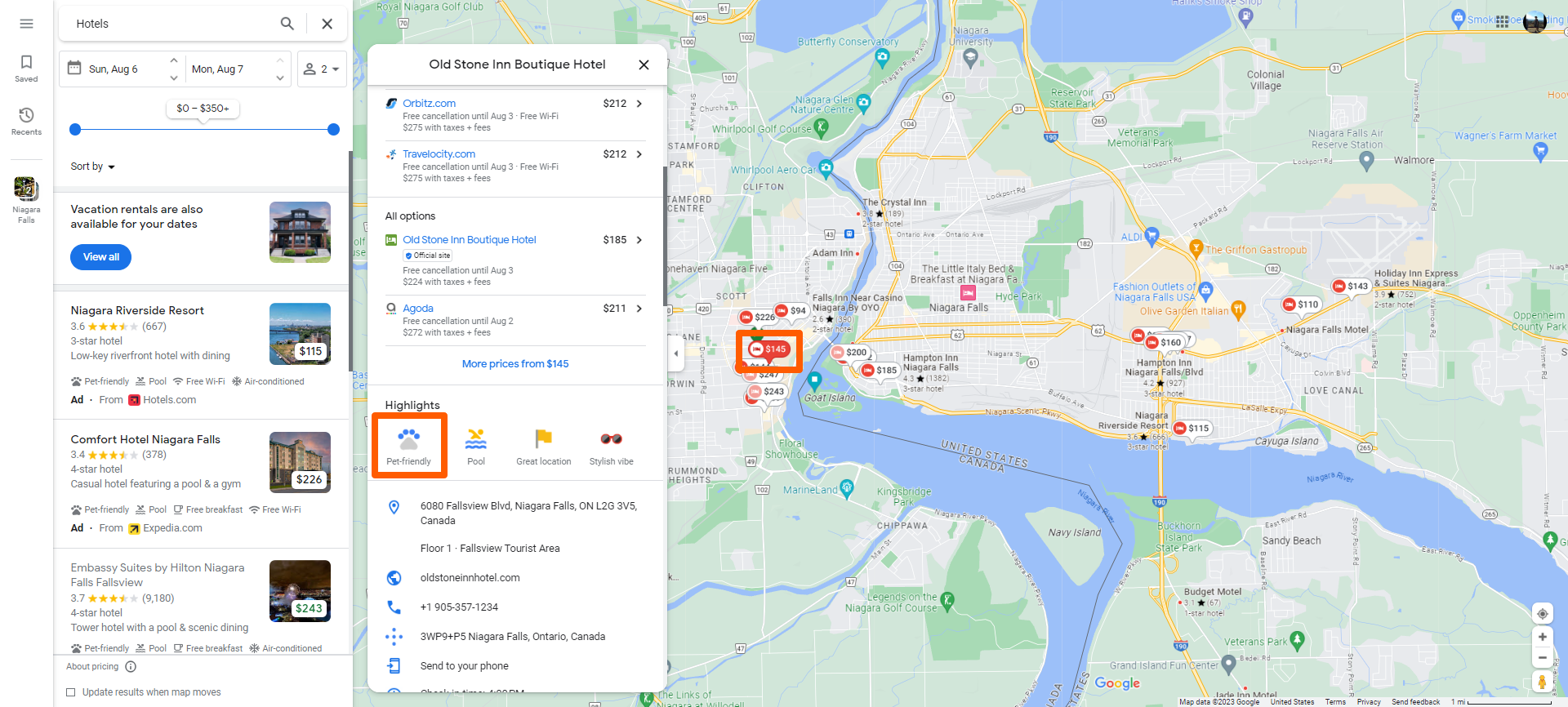 이와 같은 경우 구글맵의 필터 기능을 이용 Pet Friendly Hotel 찾고 예약하면 편리합니다.