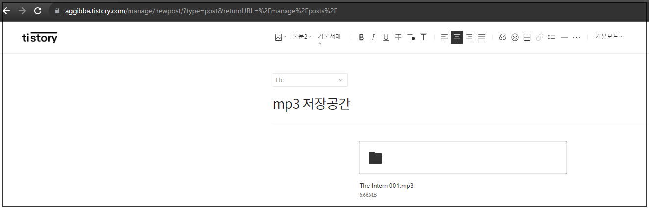 1. 원하는 mp3파일 티스토리에서 "비공개"로 저장