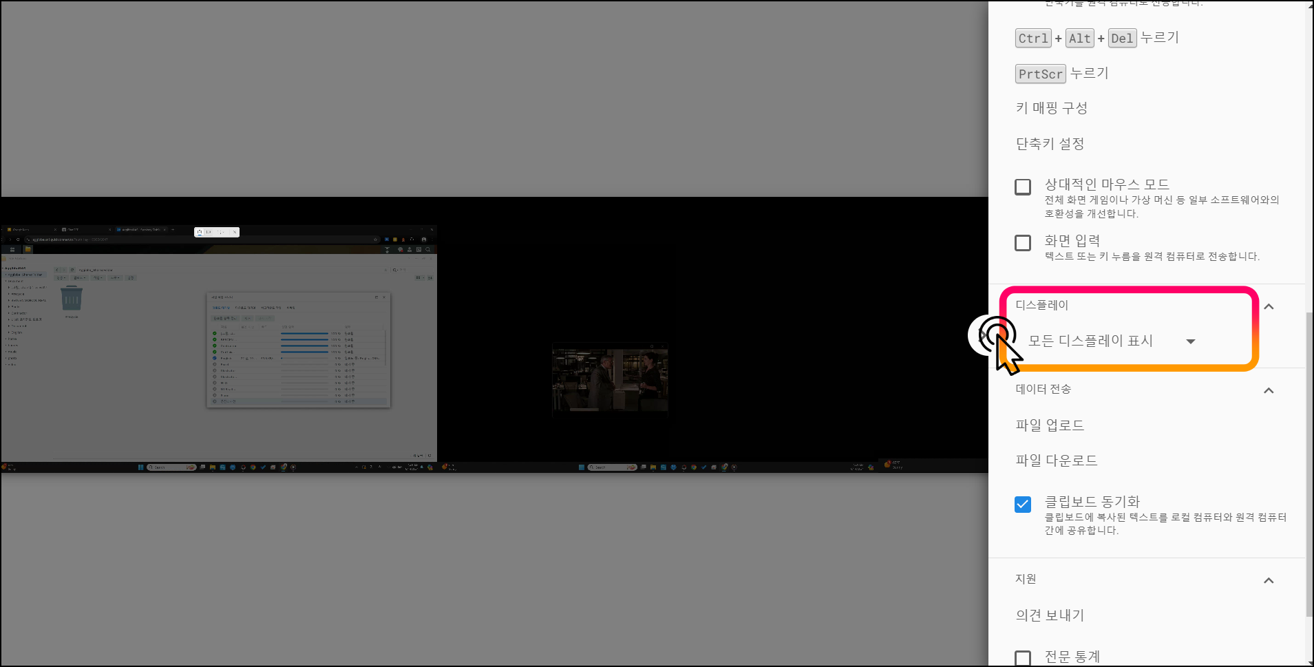"원격지원" > "화면 공유" 기능은
