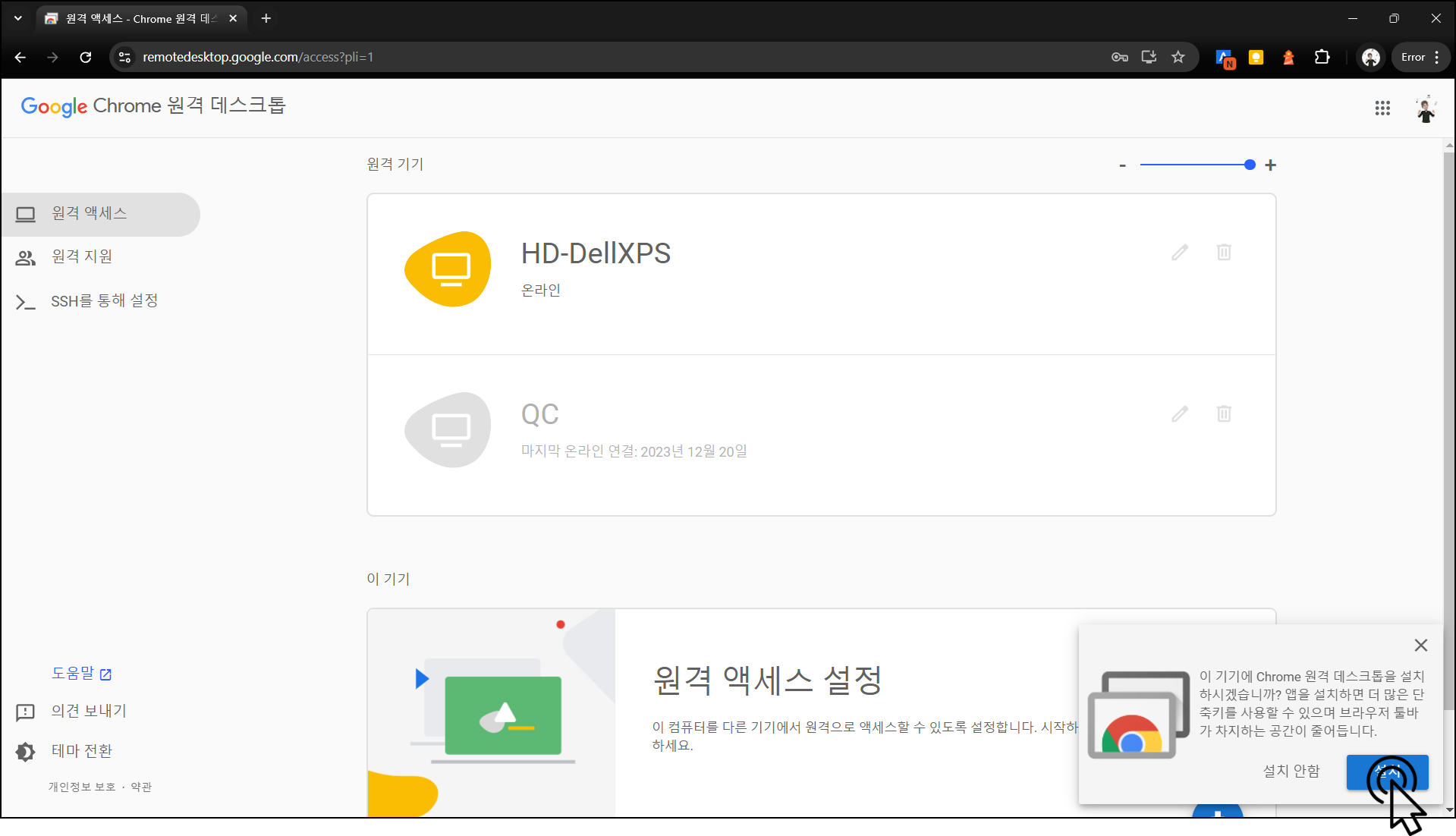 Chrome 원격 데스크톱 사용해 보기
