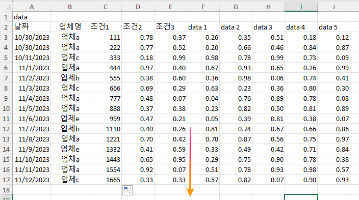 - 참고로 data는 시트 이름입니다. 시트이름을 불러올 때는! 를 사용합니다. 해서 data! 이렇게 사용합니다.