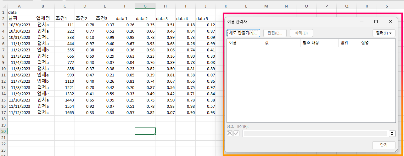 1. "이름 관리자"를 오픈합니다. (Ctrl + F3)