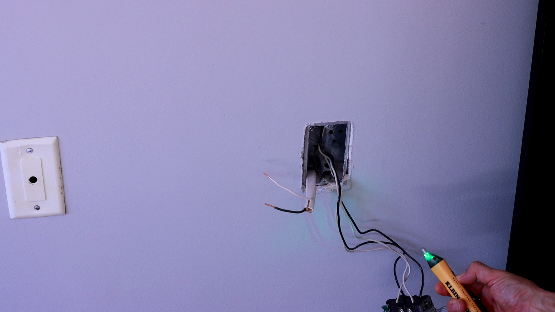 TV가 설치될 곳 벽면에 새로운 전원 콘센트 구명을 만들고 전선을 배치해 줍니다.