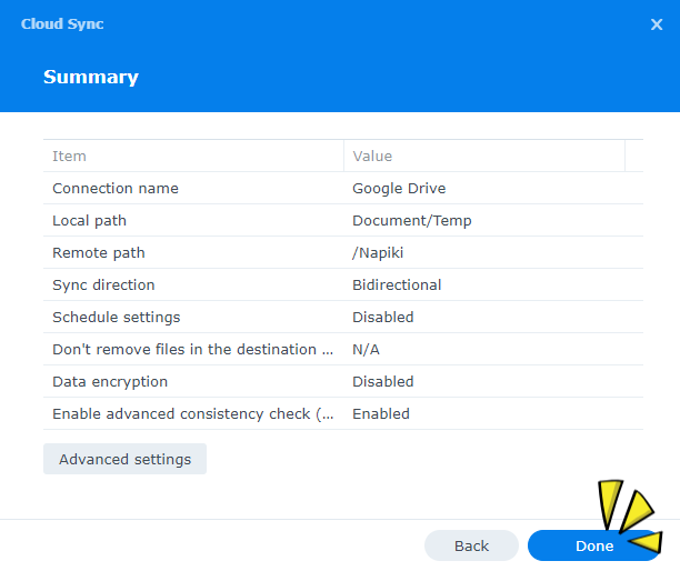 5. Summary 확인 후 "Done"