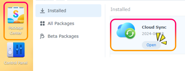 1. NAS의 "Package Center" - "Cloud Sync"를 실행합니다.
