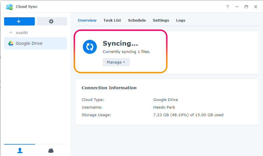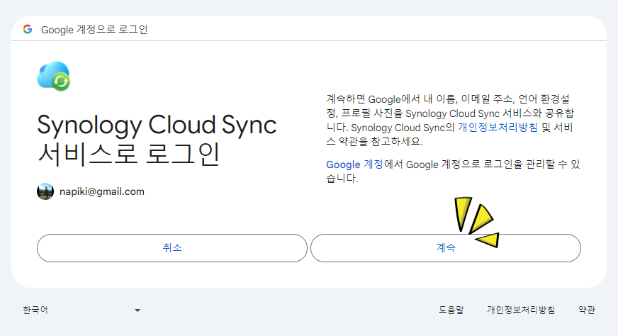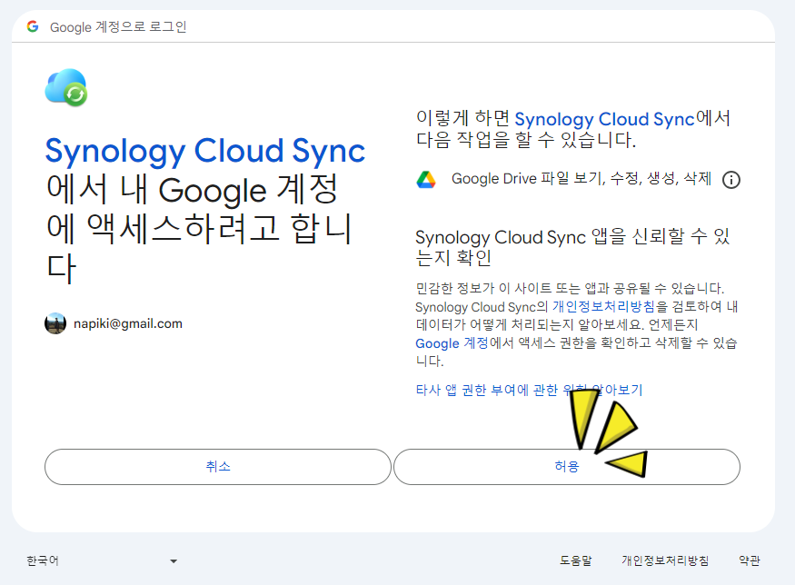 구글 드라이브 와 NAS Sync 하는 순서