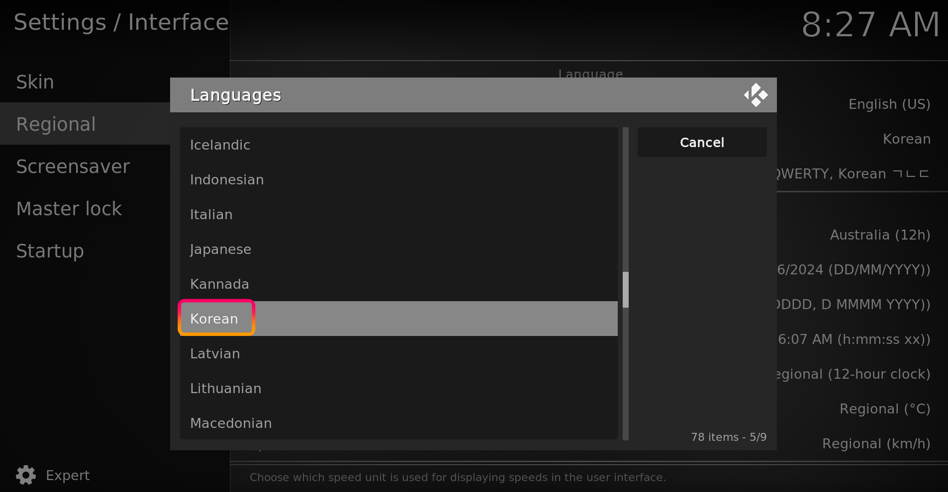KODI 설치 및 한글로 설정하기