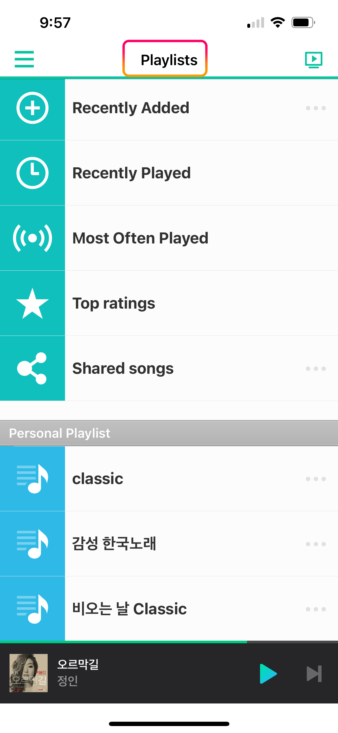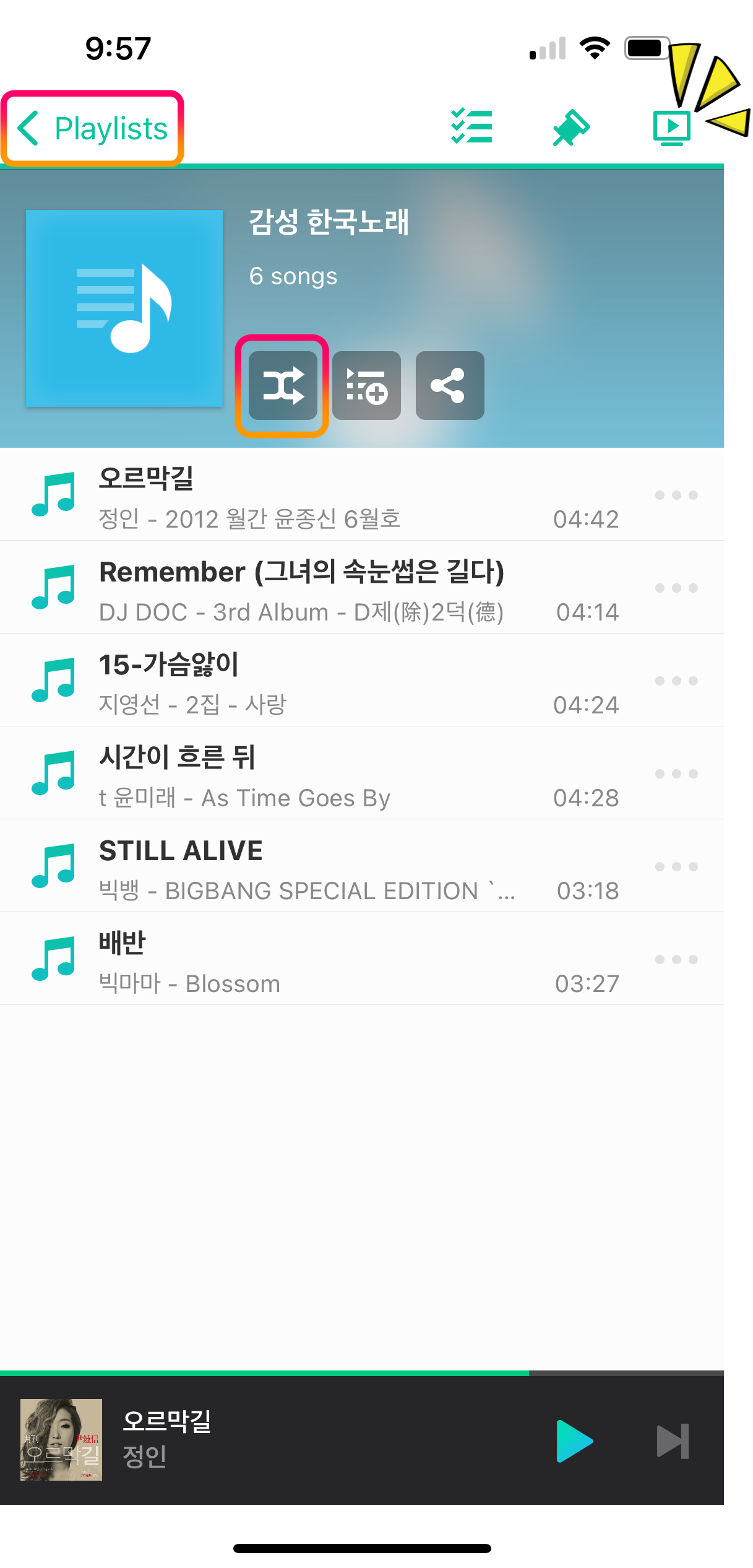 이때 새로운 Playlist를 만들 수도 있습니다.