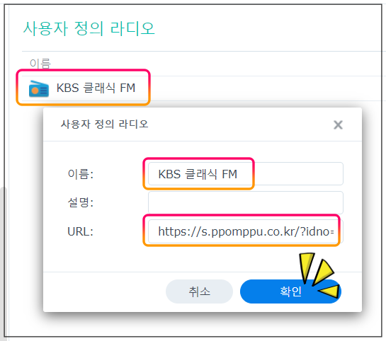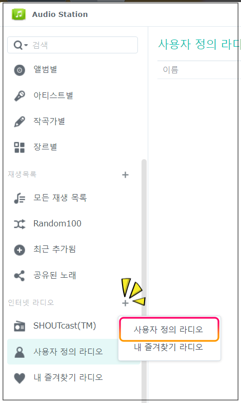 NAS에 오디오 소스(라디오 URL) 등록한 후 사용하는 방법