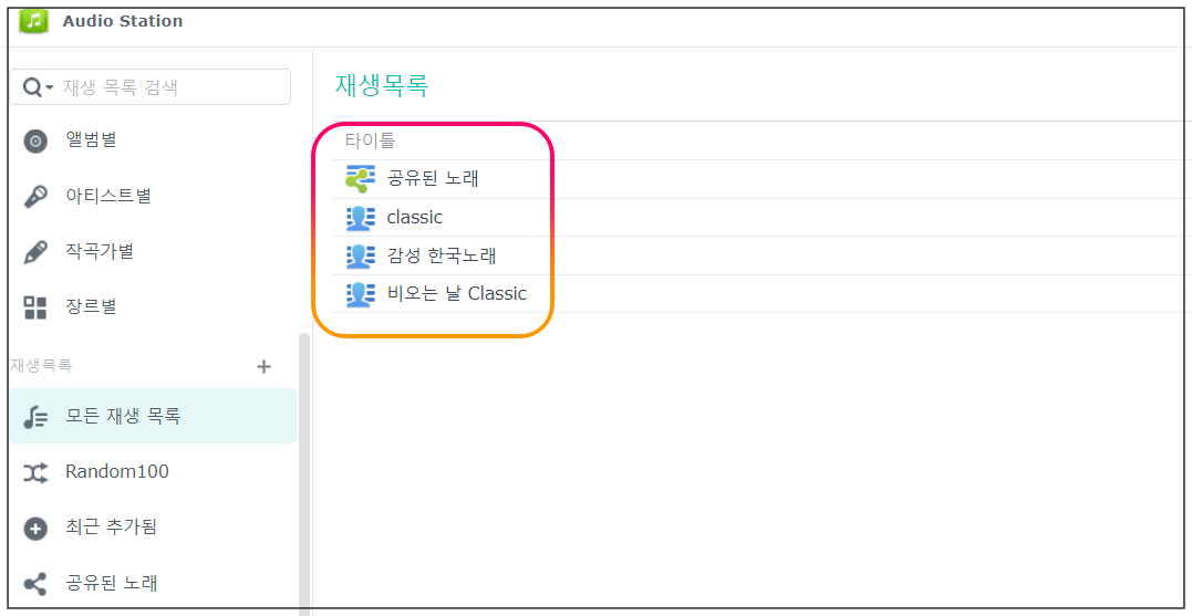 DS Audio에 파일 업로드 후 PlayList 만들어 이용하는 방법