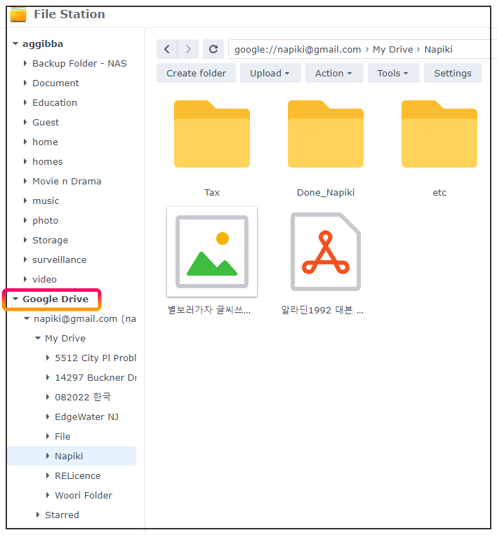 File Station 아래 구글 드라이브가 연결된것을 확인할 수 있습니다.