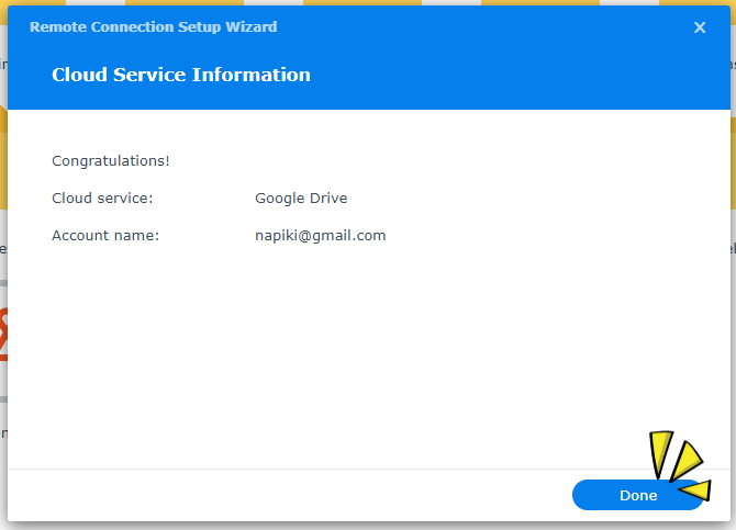 구글 드라이브의 로그인 정보를 입력하고 "Done" 을 클릭합니다.