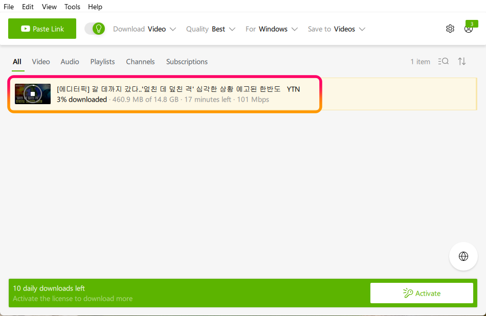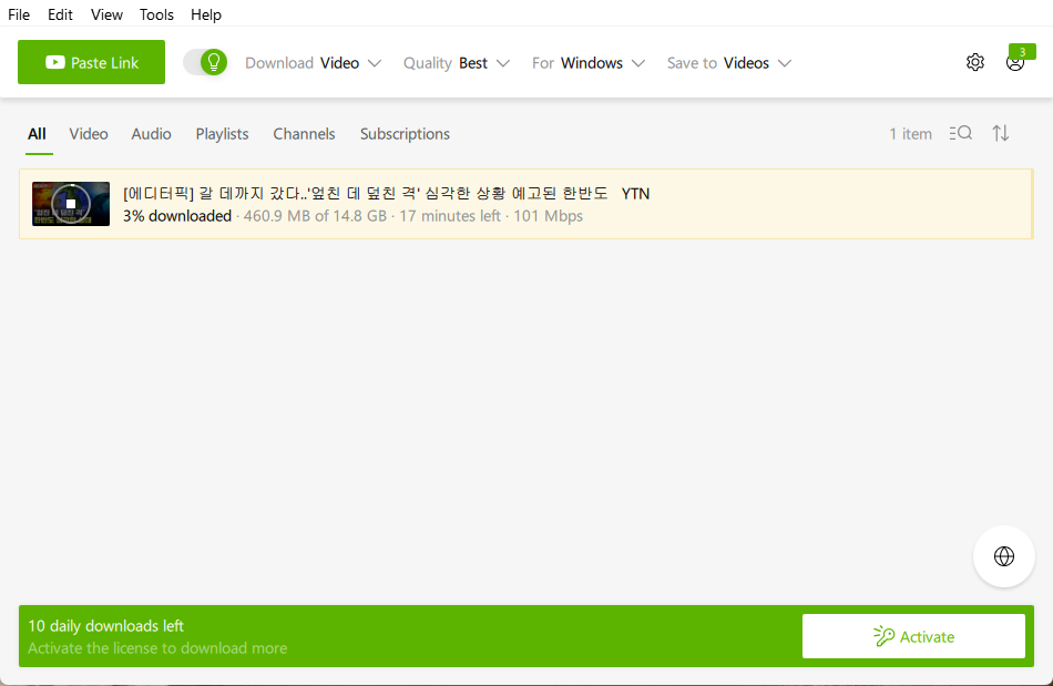 영어 문장용 짧은 영상을 다운로드 받는 용도로 사용 중입니다 만, 긴 영상은 받아 보질 못했습니다. 한번 확인해 보세요...