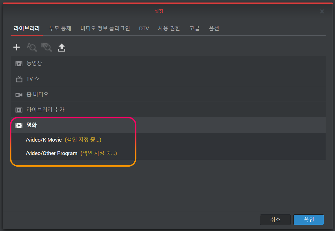 보유중인 영상의 성격에 맞게 폴더를 분리하여 관리하면 Video Station이용이 편리합니다.
