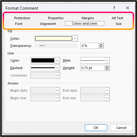 "Formet Comment..."를 선택한 후 원하는 옵션을 변경해 주시면 됩니다.