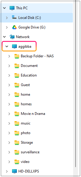 윈도우 파일 탐색기에서 보면 네트워크 드라이브로 아래와 같이 출력됩니다.