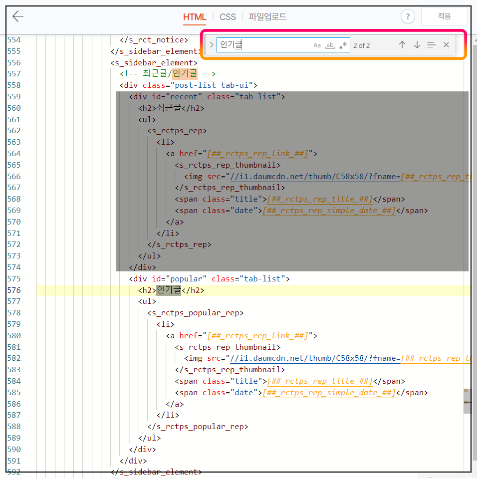 2. "Ctrl + F"로 "인기글"을 입력하여 해당 페이지로 이동후 해당 내용 삭제