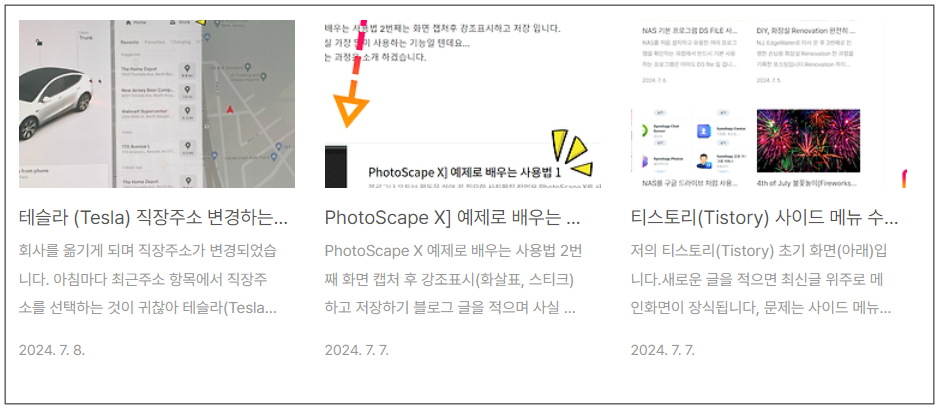 현재 저의 Aggibba.tistory.com의 화면상 썸네일(Thumbnail)이 어떻게 출력되는지 실측을 해보았습니다.
