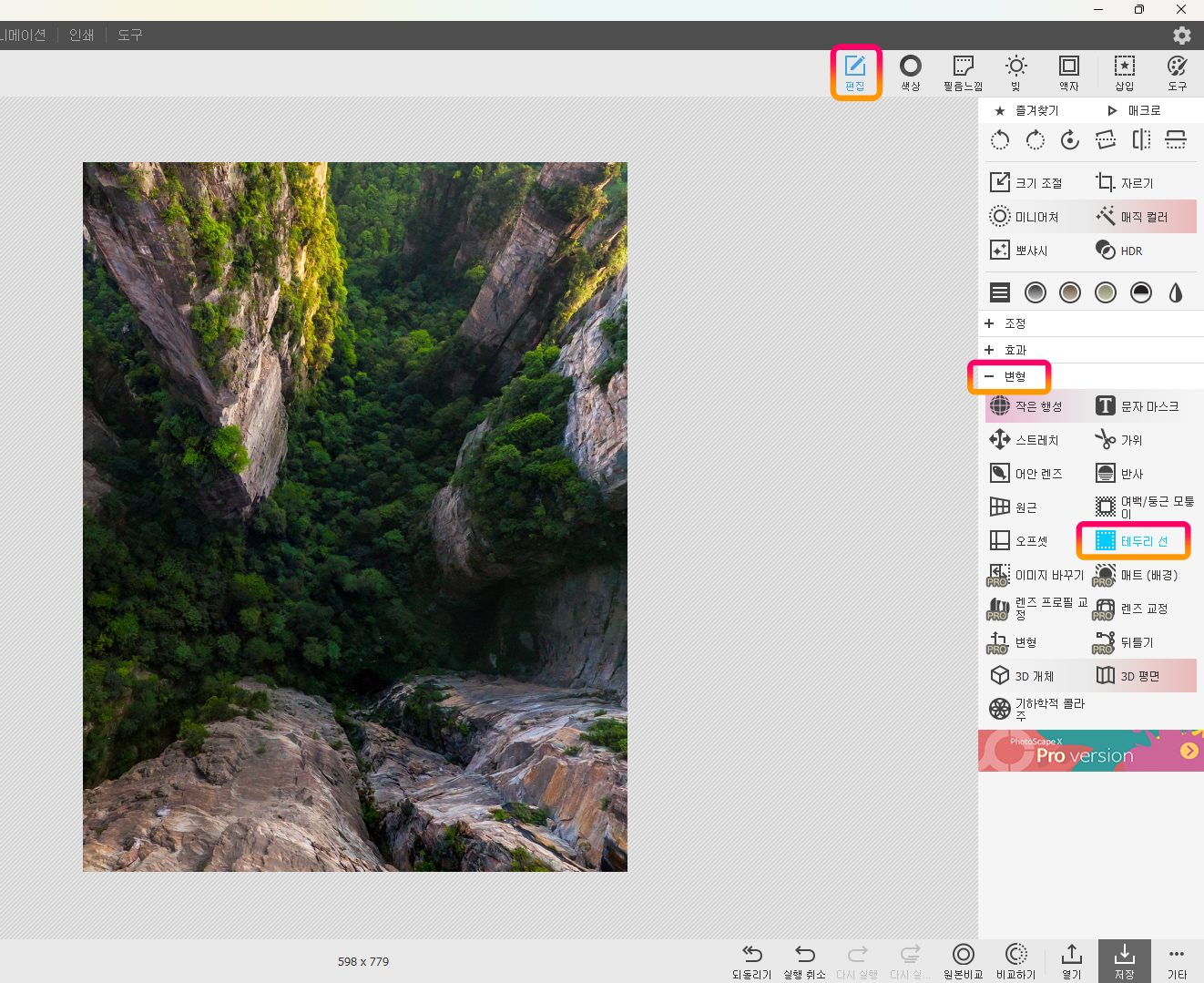 PhotoScape X에는 테두리선을 그리는 여러 메뉴가 존재합니다.