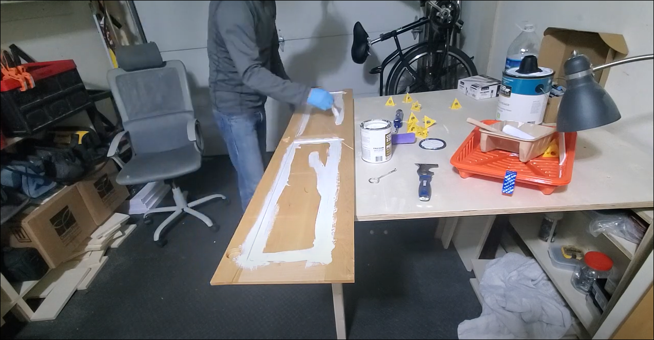 Cabinet 문을 분리한 후 "샌딩 > 프라이머 > 페인트 > 페인트 > 페인트"를 진행하였습니다.