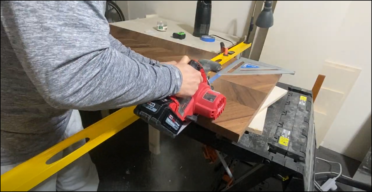 Couter Top을 제단 할 때 Table Saw가 없다면 가이드를 고정한 후 작업하면 정확한 제단이 가능합니다.