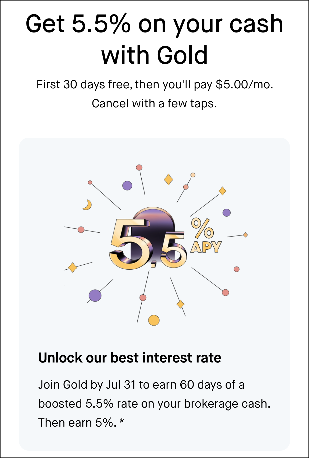 로빈훗 골드(Robinhood Gold)는 로빈훗 (Robinhood)의 프리미엄 멤버십 서비스로 아래의 해택을 제공합니다.