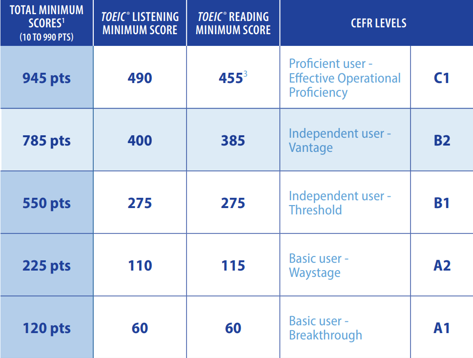 - 각 부분별 만점은 495점으로, Listening과 Reading을 합쳐 총점 만점은 990점입니다.