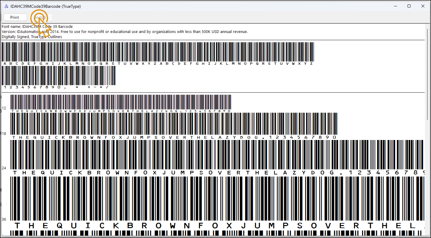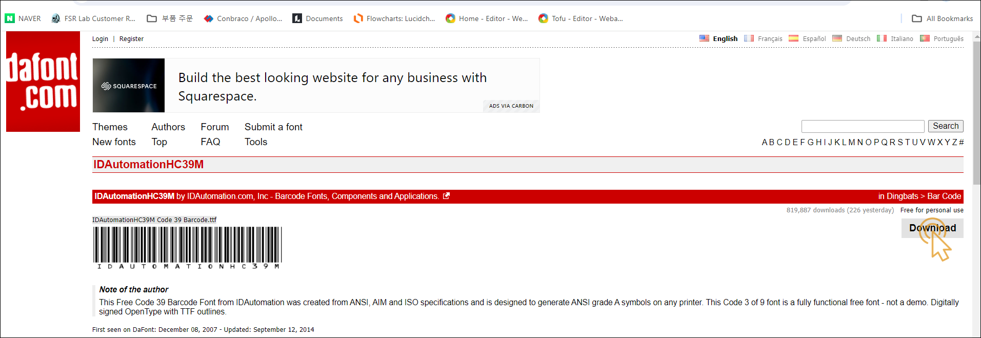 1. 해당 페이지에서 글꼴 "IDAtutomationHC39M" 을 다운로드합니다. (아래 그림을 클릭하시면 해당 링크로 이동합니다.)