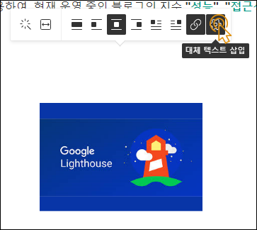 alt 속성 추가 : "대체 텍스트 삽입" > "문자 입력하고후" > "확인"