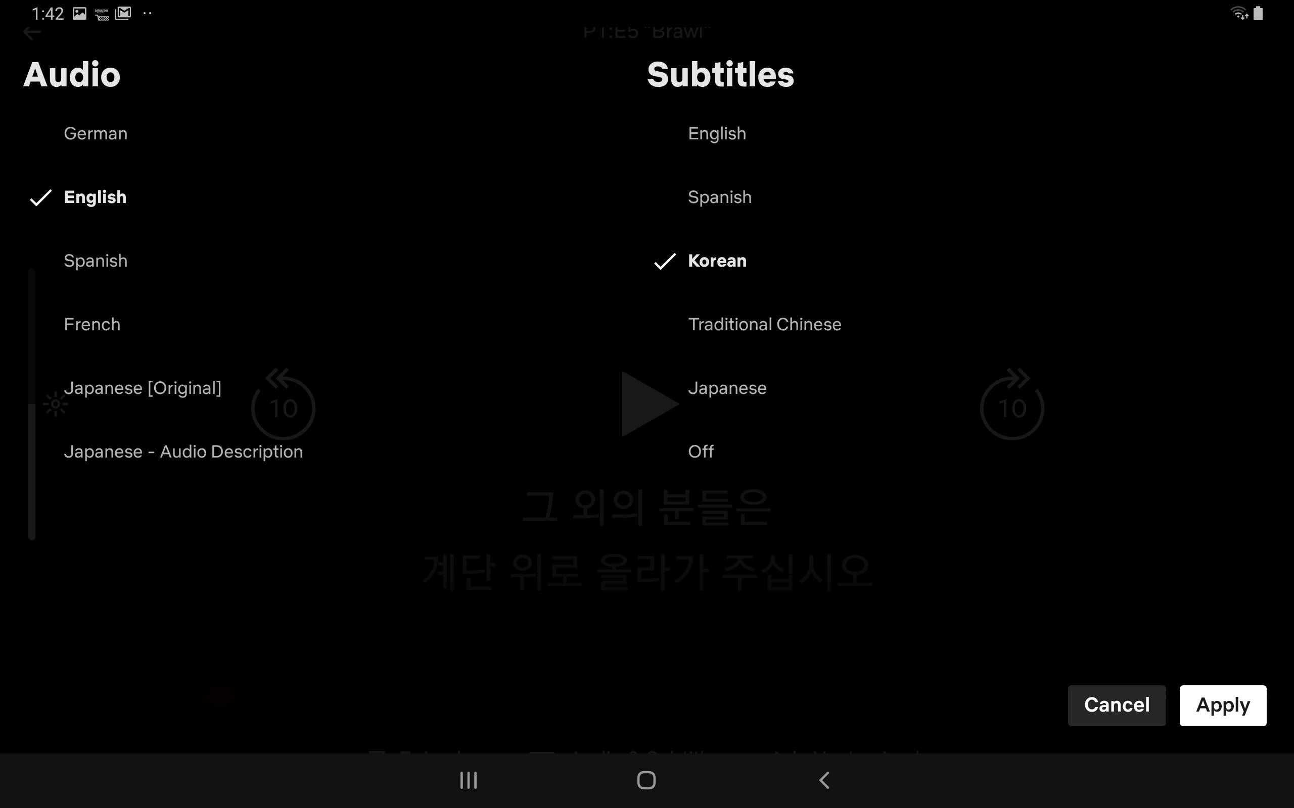 - NETFLIX를 실행한후 자막을 한국으로 선택합니다.