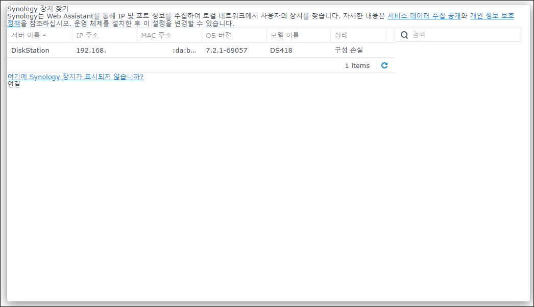 "Synology Assistant"를 다운로드 후 실행 시켜줍니다.