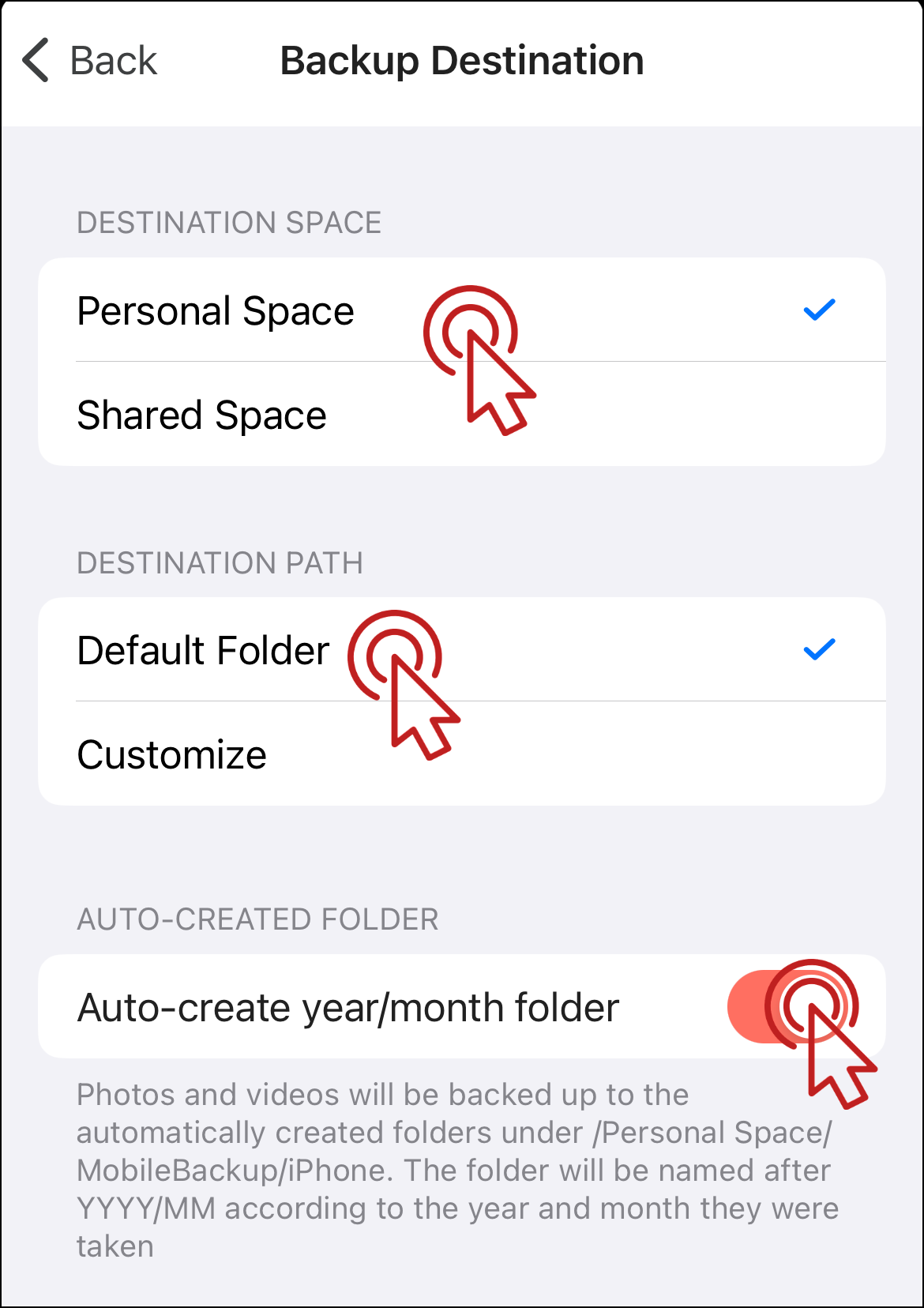 "Homes" > "ID 이름" > "Photos" > "MobileBackup" > "iPhone" > "Year" > "Month"