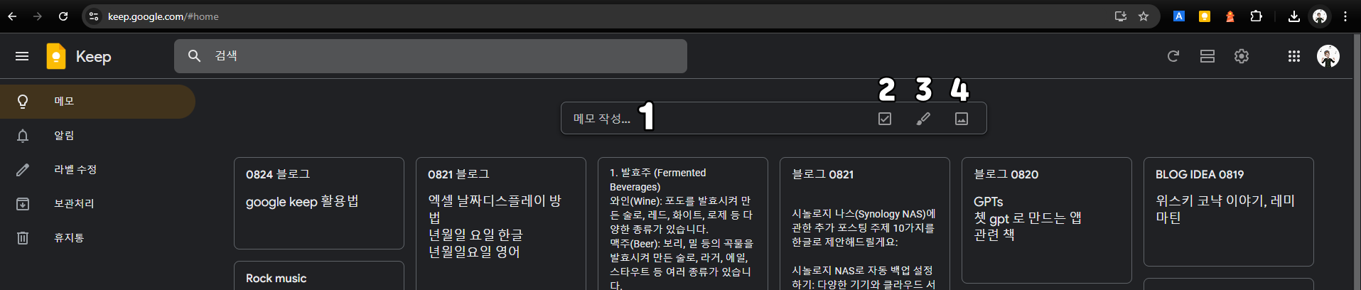 저는 구글 킵(Google Keep)을 메인으로 사용하는데요
