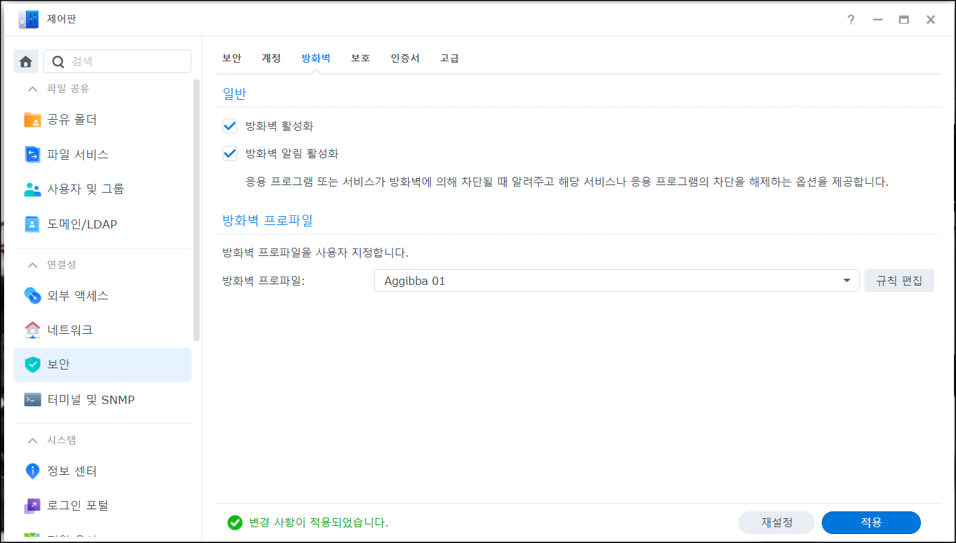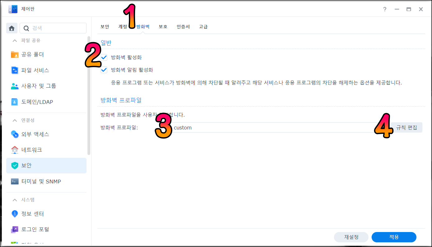 시놀로지 나스(Synology NAS)에서 방화벽 설정하기