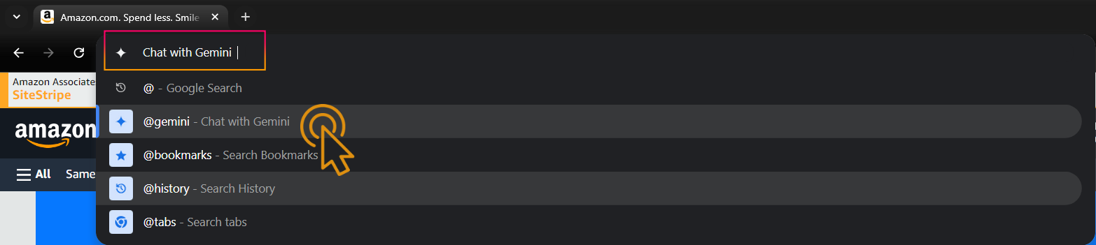 주소창에 @ 입력하면 gemini,bookmarks,history,tabs 등을 선택할 수 있는 메뉴가 출력됩니다.