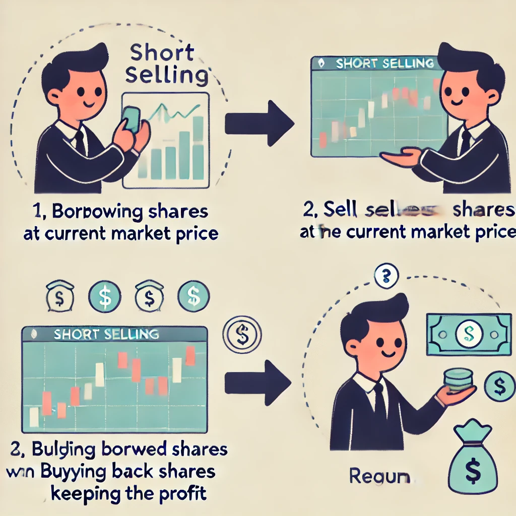 공매도를 위해선 먼저 주식을 빌려와야 합니다. 증권사에서 주식을 빌릴 수 있도록 차입 공매도 서비스 계좌를 통해 거래할 수 있으며, 빌린 주식은 일정 기간 내에 갚아야 합니다. 빌린 주식의 비용(이자)이 부과되며, 수수료도 발생할 수 있습니다.