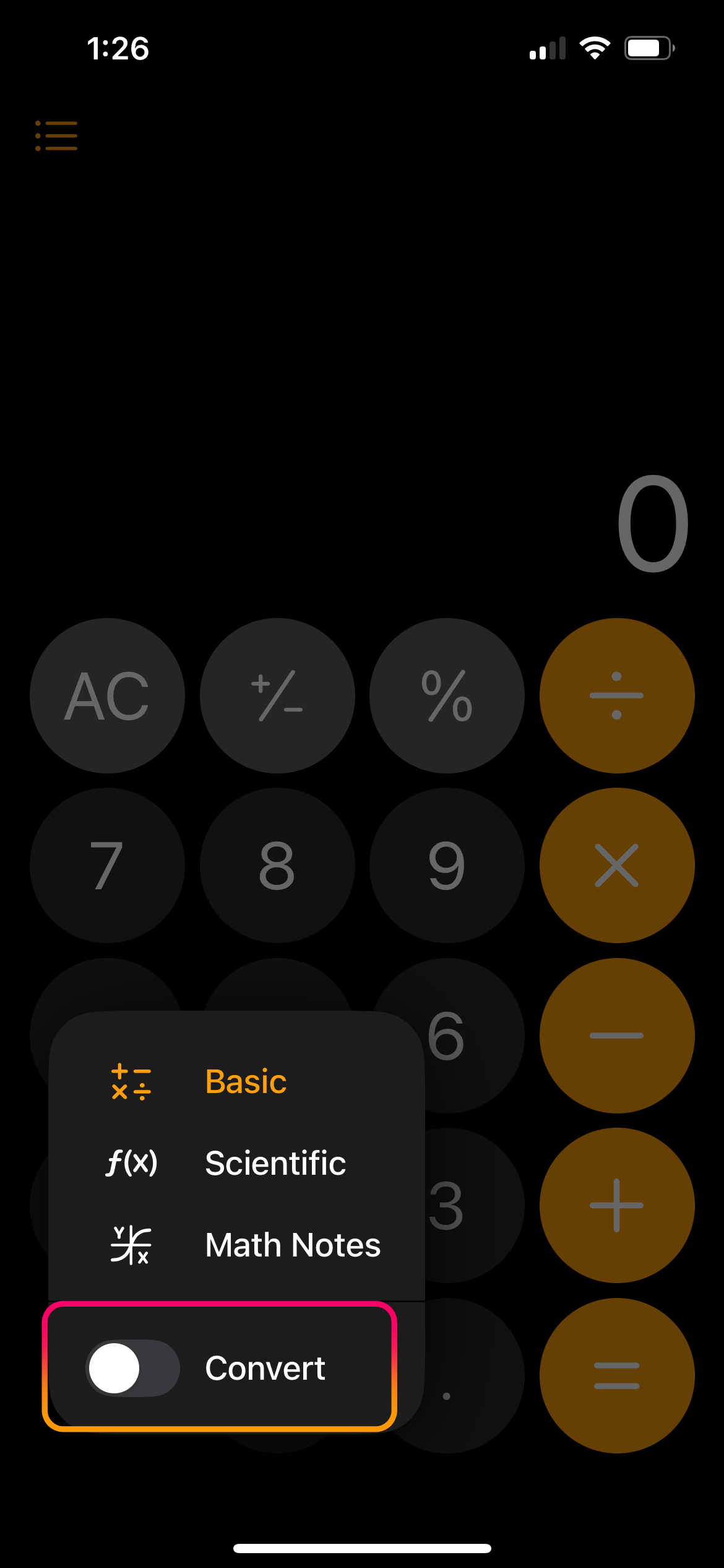 "계산기 앱" > "계산기 아이콘" > "Convert"