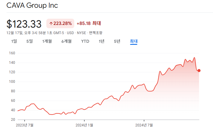 - 매출 성장: CAVA는 최근 몇 년간 두 자릿수 성장률을 기록하며 빠르게 시장을 넓히고 있습니다.