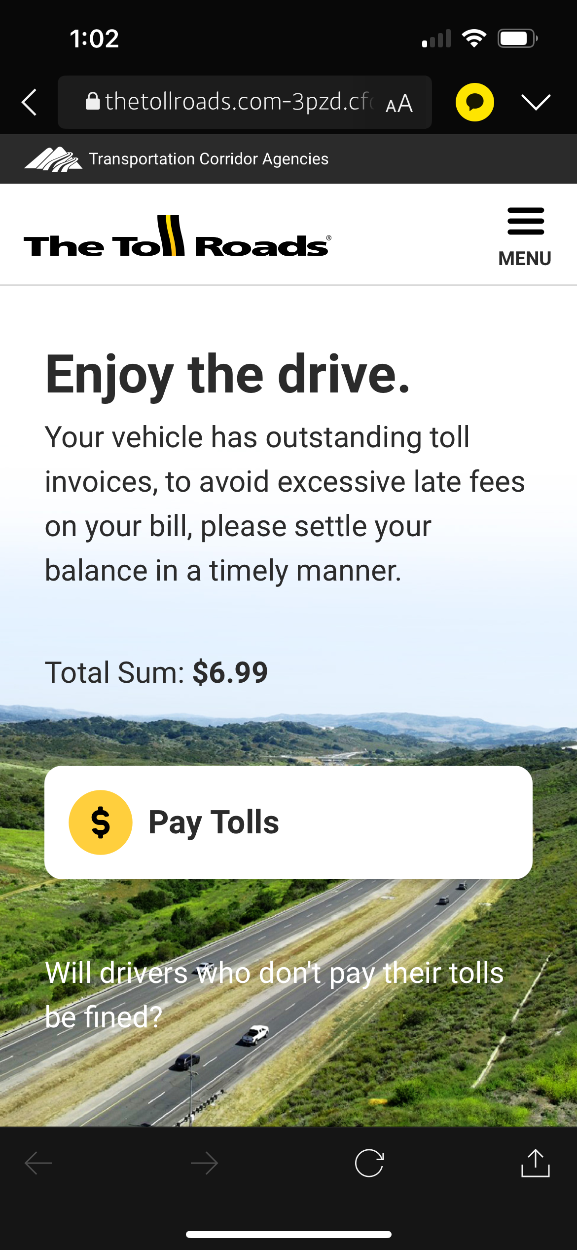 마치 제가 FasTrak Fees를 지불하지 않은 것처럼... 이렇게 옵니다.