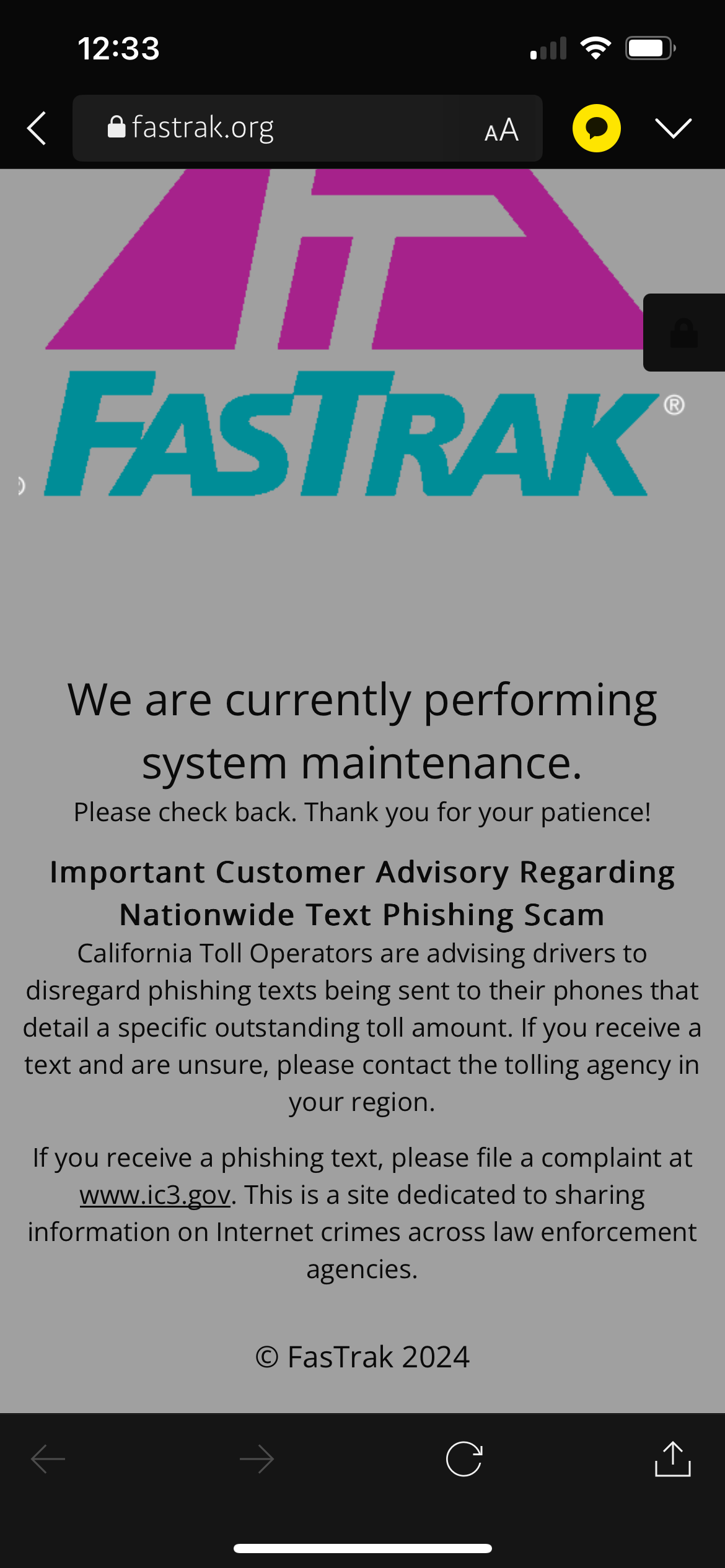 FastTrak TEXT Phishing Scam에 주의하세요