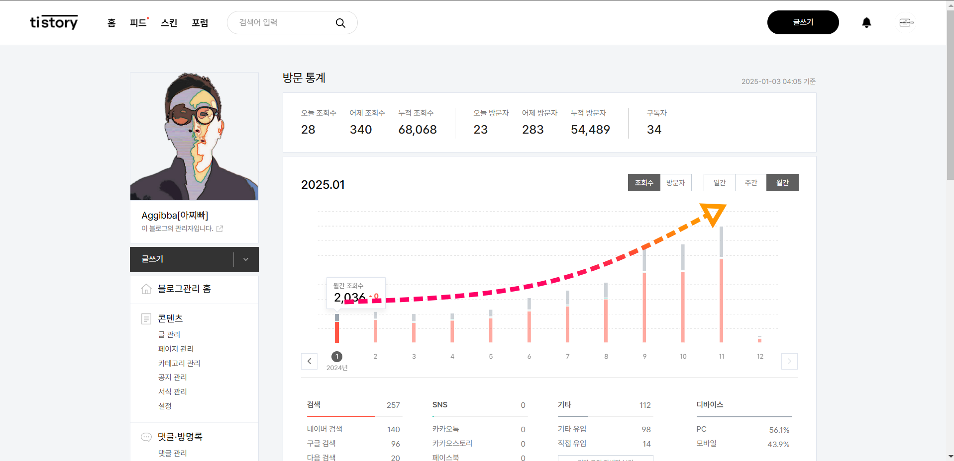 그냥 내가 적을 수 있는 글을 매일 포스팅하는 것 만으로 위의 그림과 같은 성과를 내고 있습니다.