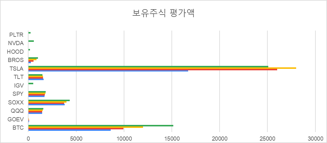 지난달에는 신규주식 PLTR, NVDA, HOOD 등을 매수 하였습니다.