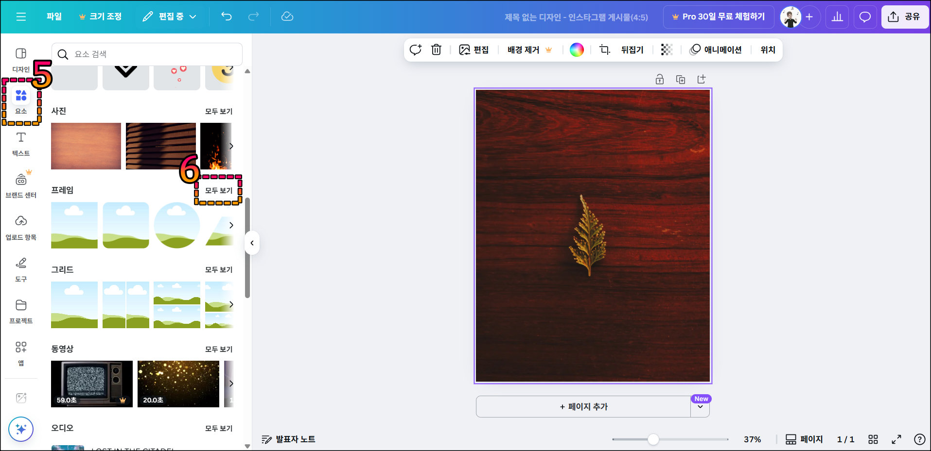 프레임 : 사진이나 동영상을 특정 모양의 틀에 맞춰 배치할 수 있는 디자인 요소입니다.